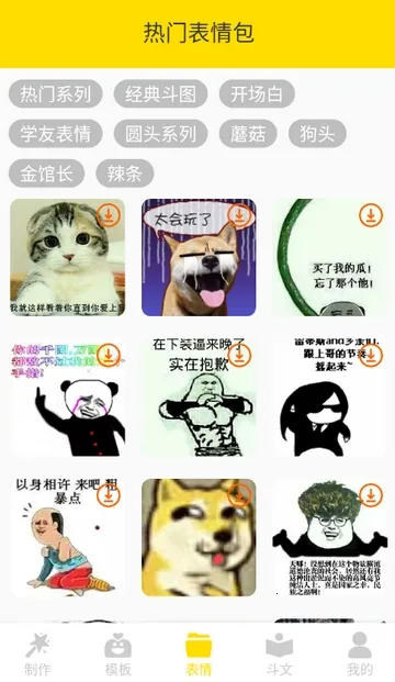 2. 拥有海量表情包素材,像熊猫人、蘑菇头、萌表情等应有尽有。