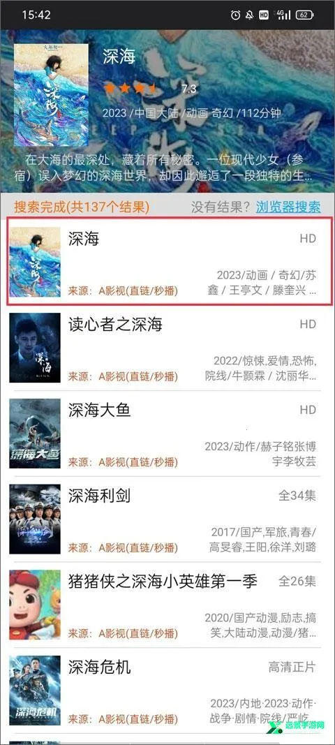 2、这里就会显示跟电影相关的其他影视资源列表,点击其中一个再次点击进入视频播放界面。