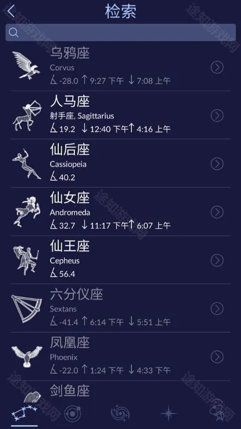 3、点击屏幕左下角搜索标签,可以直接搜索想要观看星座或者恒星;
