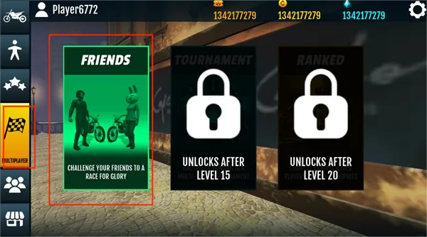 2、在游戏主页的左侧可以添加好友与其进行竞速比赛。