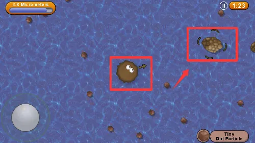 2、红色框框是角色,移动角色去吃比自己小的东西。