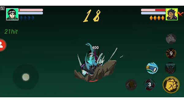 屏幕左侧为我方血条与查克拉条,右侧为对手状态栏,实时显示生命值、技能冷却与特殊状态;