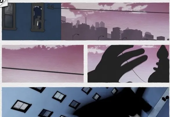 按照下图所示的致命框架攻略移动插画的位置,这样主人公便可以顺利躲过警察的追捕并且借助左下角图片上的钩子滑到最后一幅图上,避开那些讨厌的木棍。